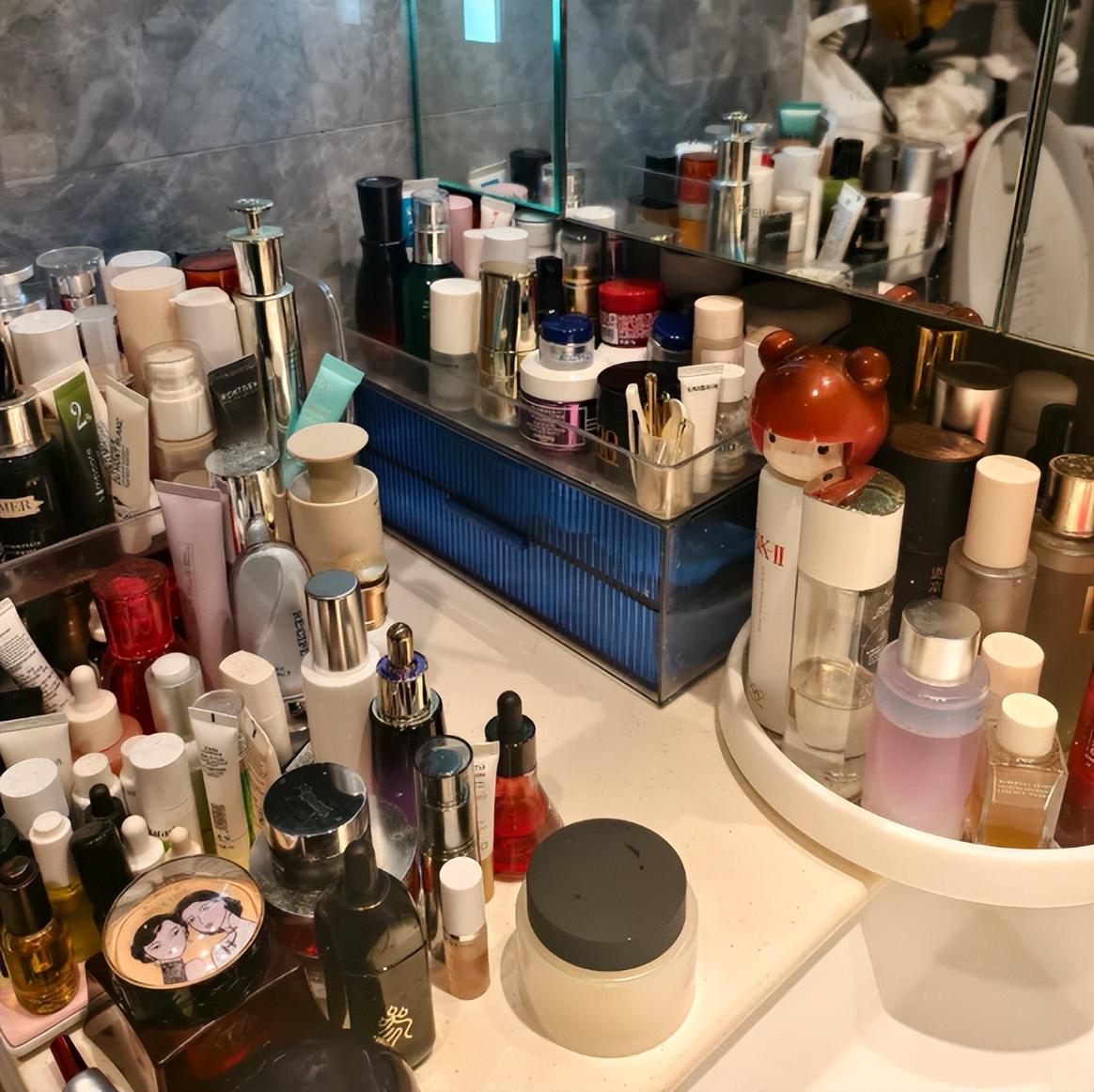 整理梳妆台的时候,我发现梳妆台上面护肤品特别多,