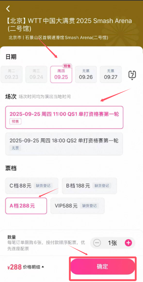 (三)选择日期、场次和票档,点击“确定”即可购买。
