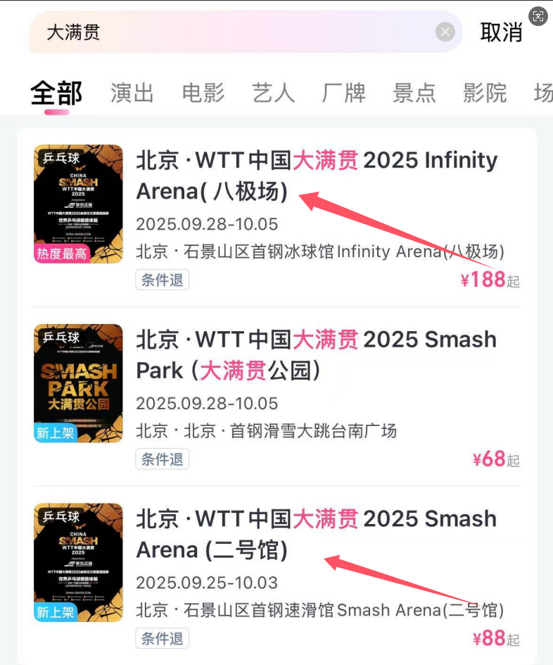 (一)在大麦App首页搜索框搜索”大满贯“,选择“八极场”或“二号馆”,点击进入;