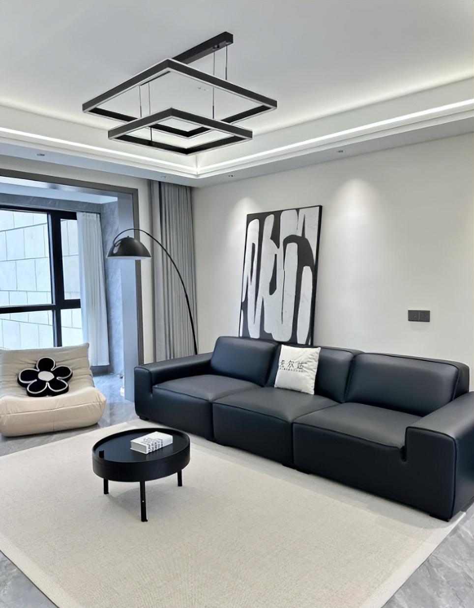 沙发尽量选择一些深色的,比如说黑色、咖色、棕色,做一个反差色,它能给客厅带来一些重色,这种搭配的视觉感会更好。