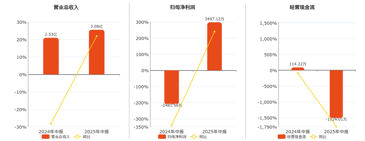 公司营业总收入为3.08亿元国鸣投资,较去年同报告期营业总收入增加5546.52万元,同比较去年同期上涨21.94%。归母净利润为3497.12万元,较去年同报告期归母净利润增加5978.67万元。经营活动现金净流入为-1924.01万元。